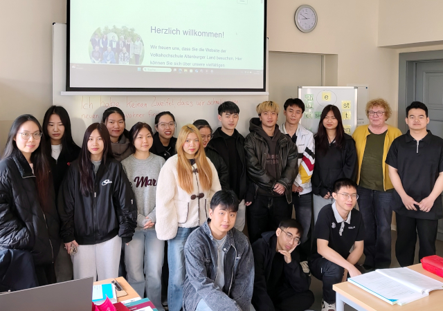 19 junge Leute aus Vietnam, die in Deutschland in den Bereichen Pflege oder Gastronomie arbeiten wollen, absolvieren seit Mitte März einen Aufbausprachkurs Deutsch in der Volkshochschule Altenburg. Für ihren Ausbildungsbeginn im Herbst wollen sie die erforderlichen Sprachkenntnisse erreichen bzw. auffrischen. Einen besonderen Schwerpunkt legt Kursleiterin Rita Buschermöhle (2.v.r.) auf die Stärkung der Lautbildungskompetenz und das Training des Hörverstehens, denn die deutsche Aussprache ist für vietnamesische Lernende besonders herausfordernd. Wir wünschen allen Kursteilnehmenden viel Erfolg und eine schöne Zeit in unserer Volkshochschule!